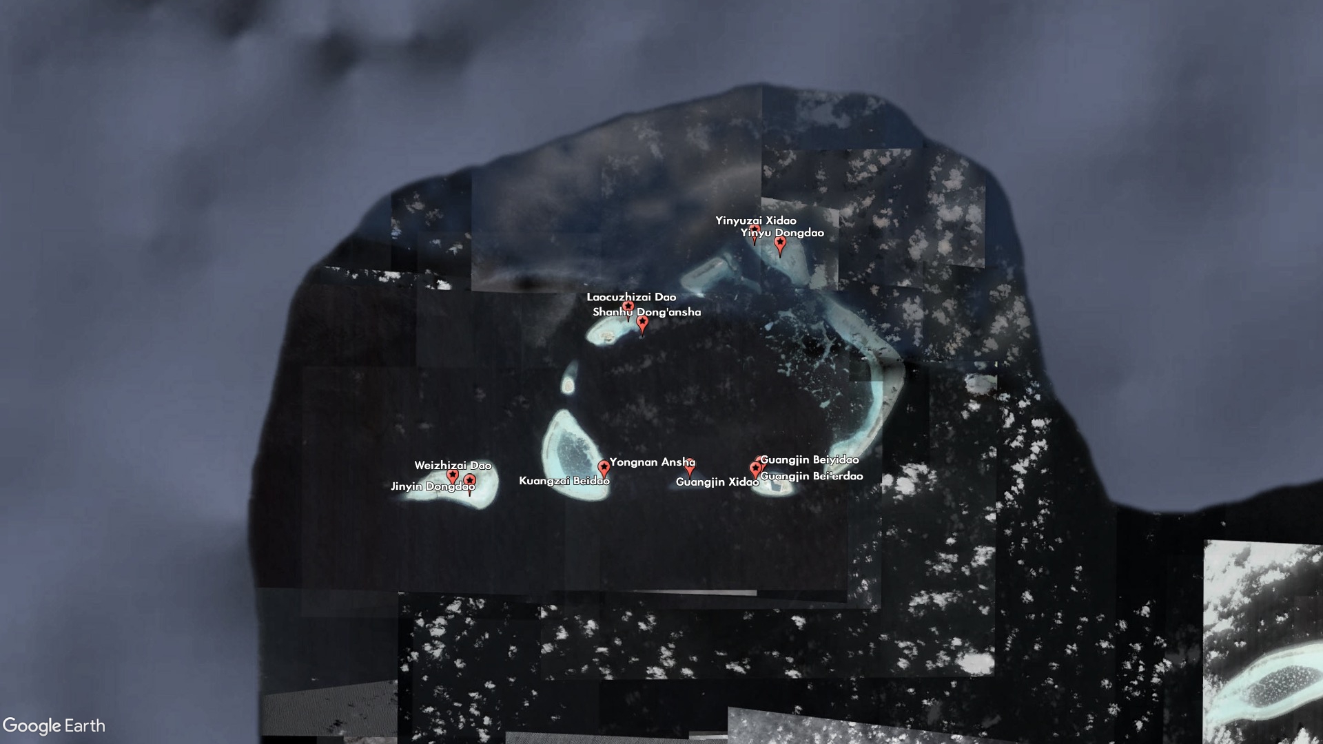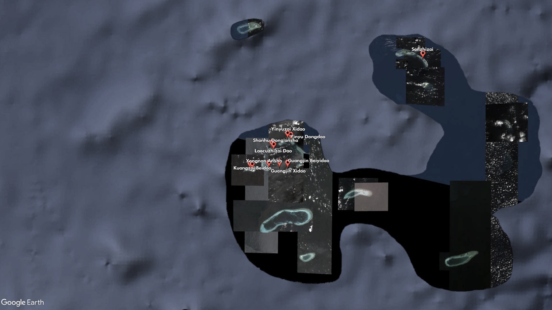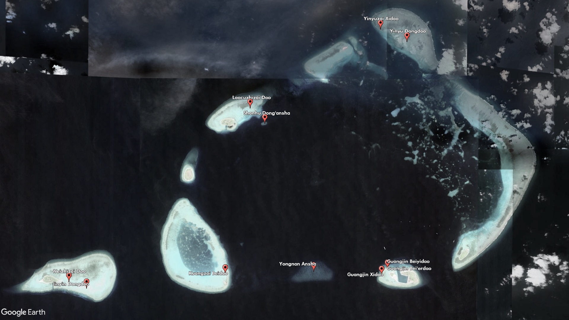 Other new features are clearly meant to plug the gaps between and around China's military outposts and artificial islands. Guangjin Beiyidao and Guangjin Bei'erdao (Guangjin North First Island and Guangjin North Second Island) are indistinguishable from each other, and China lists the same coordinates for both of them, but together with Guangjin Xidao (Guangjin West Island) they make up the small sand barrier on the western side of Duncan Island, which houses a Chinese-built harbor and outpost.