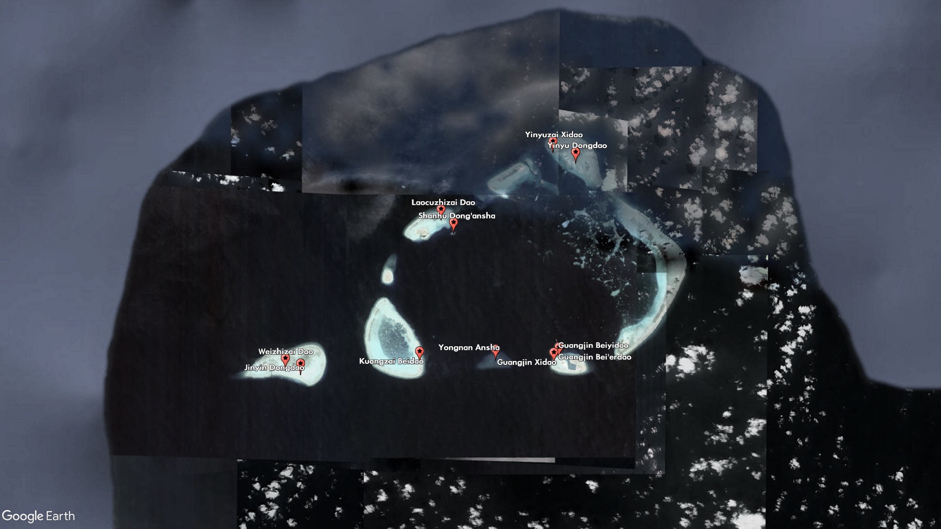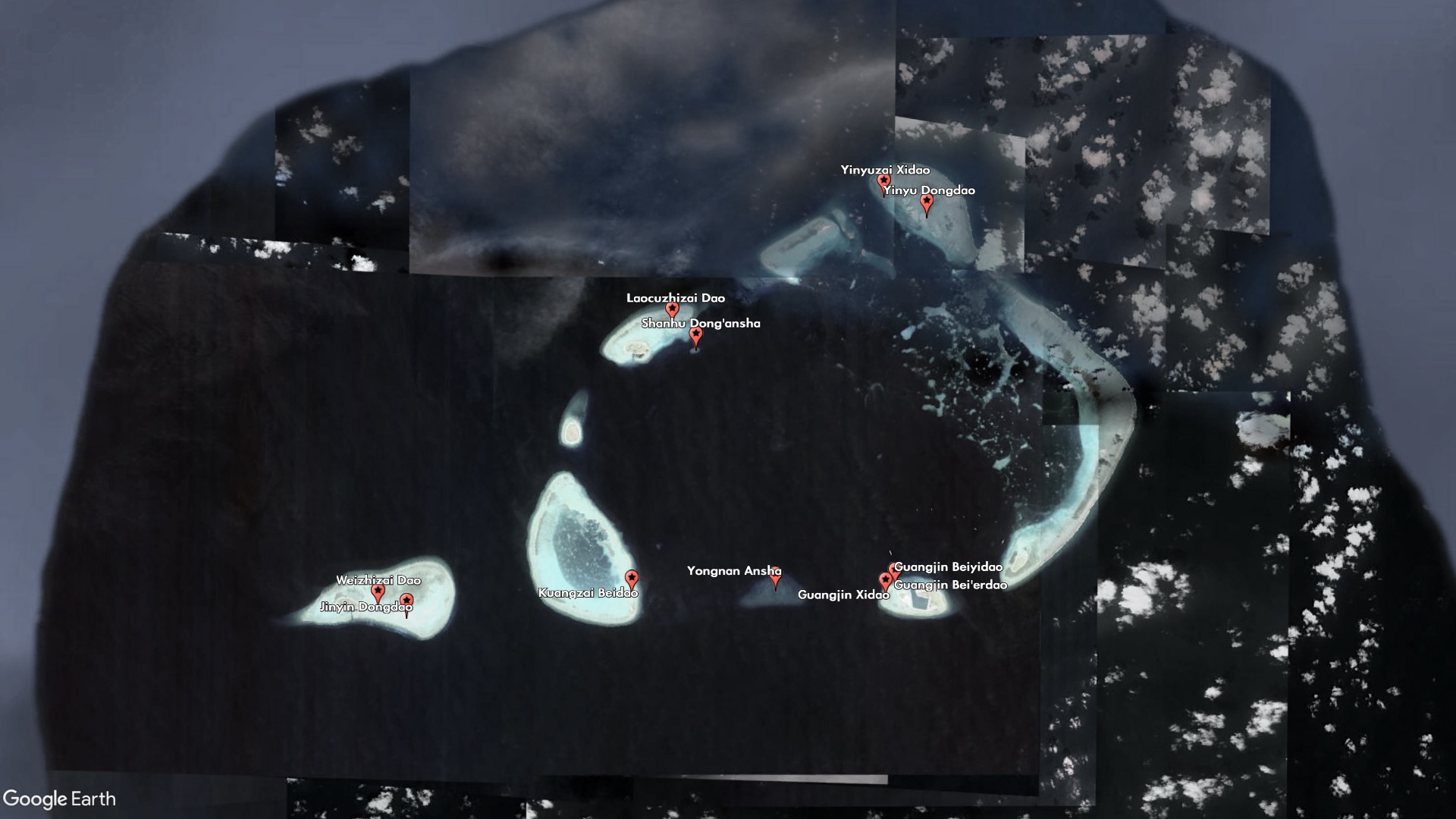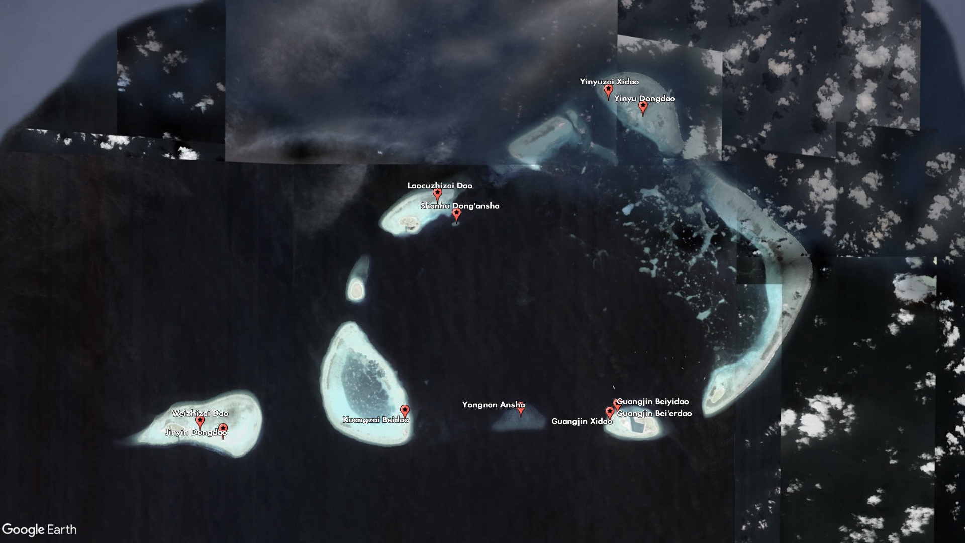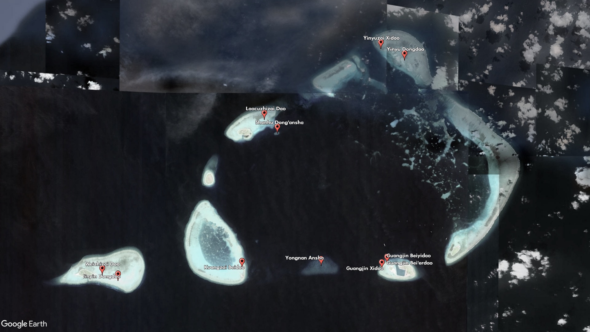 Other new features are clearly meant to plug the gaps between and around China's military outposts and artificial islands. Guangjin Beiyidao and Guangjin Bei'erdao (Guangjin North First Island and Guangjin North Second Island) are indistinguishable from each other, and China lists the same coordinates for both of them, but together with Guangjin Xidao (Guangjin West Island) they make up the small sand barrier on the western side of Duncan Island, which houses a Chinese-built harbor and outpost.