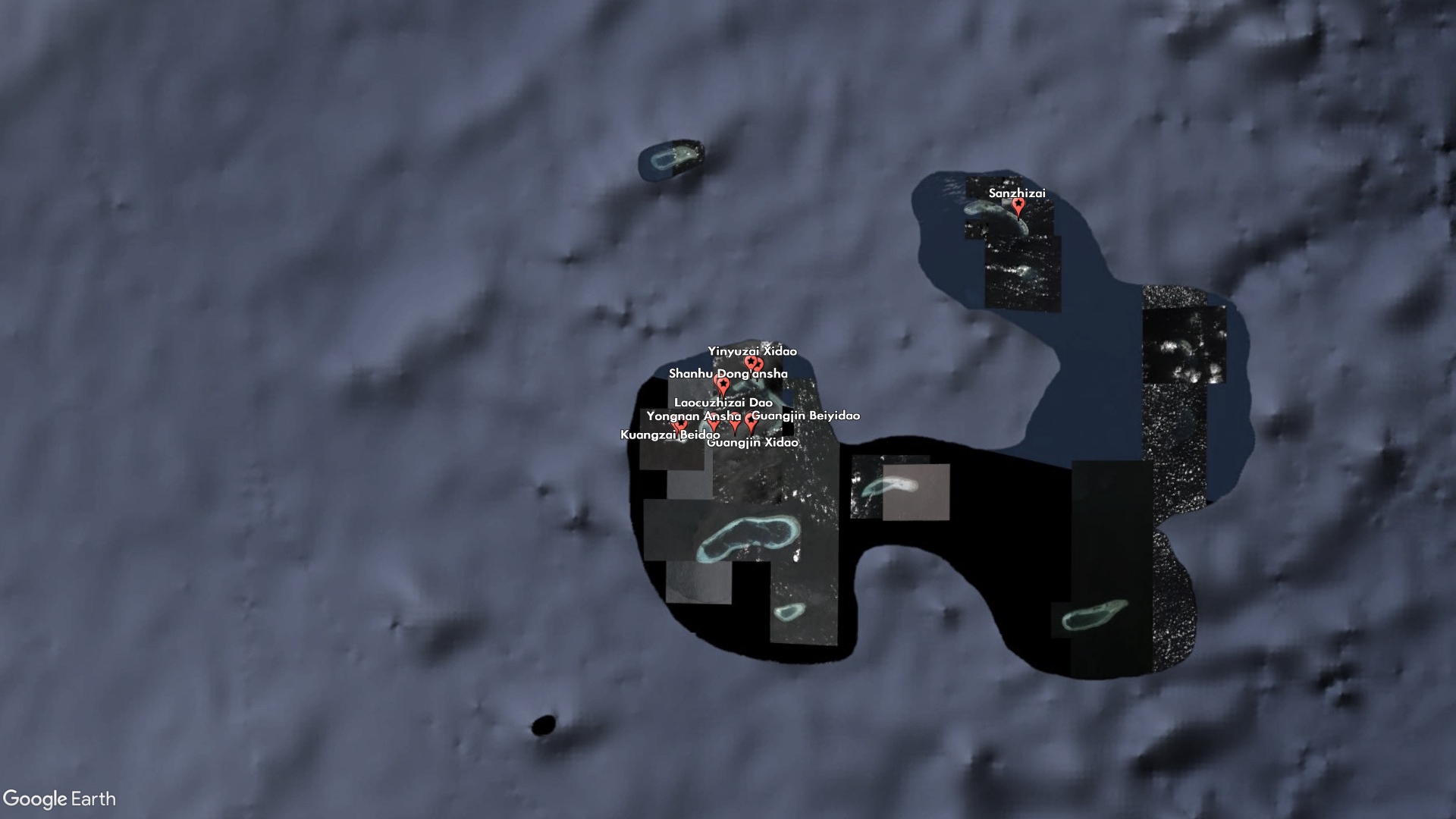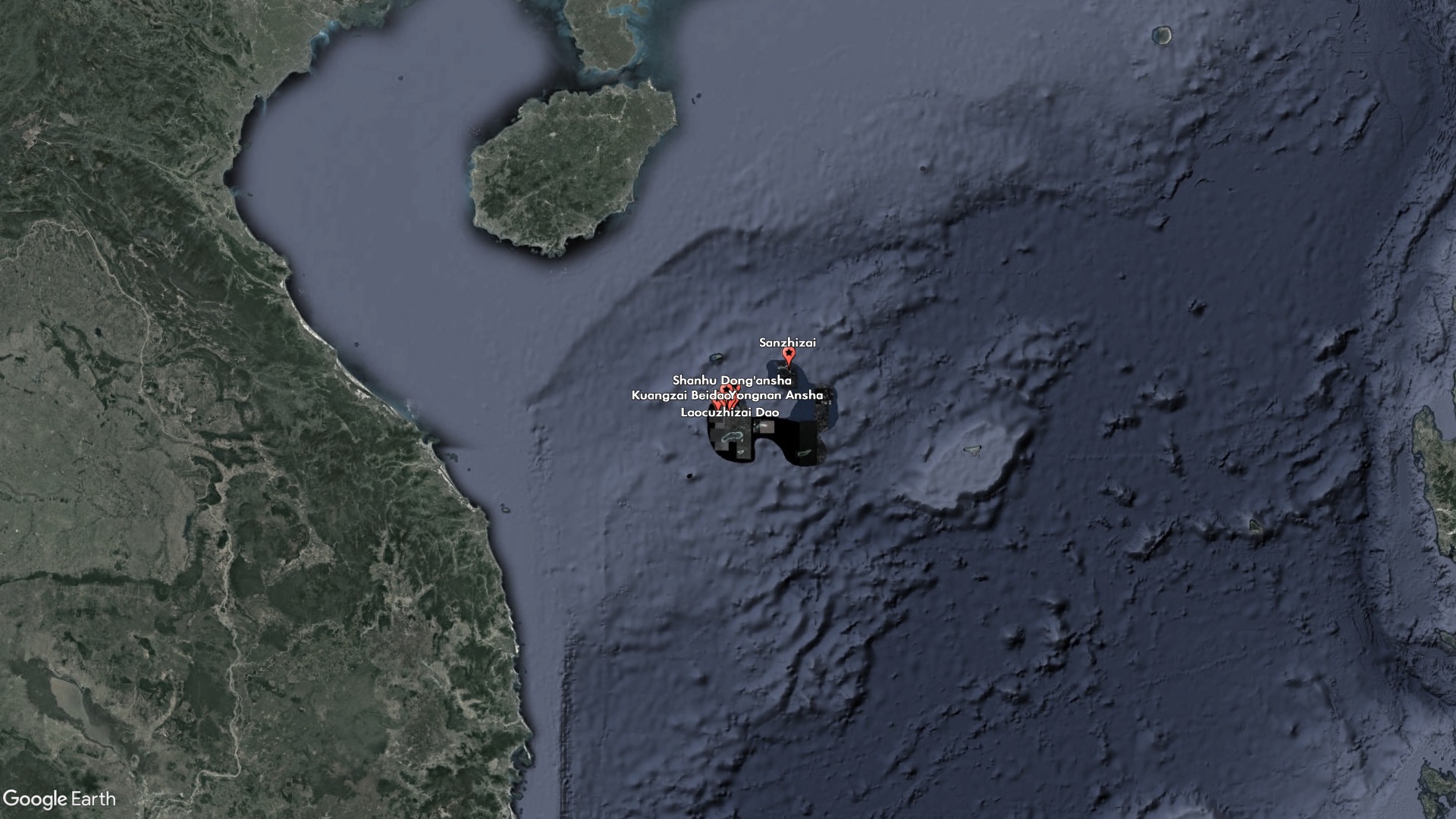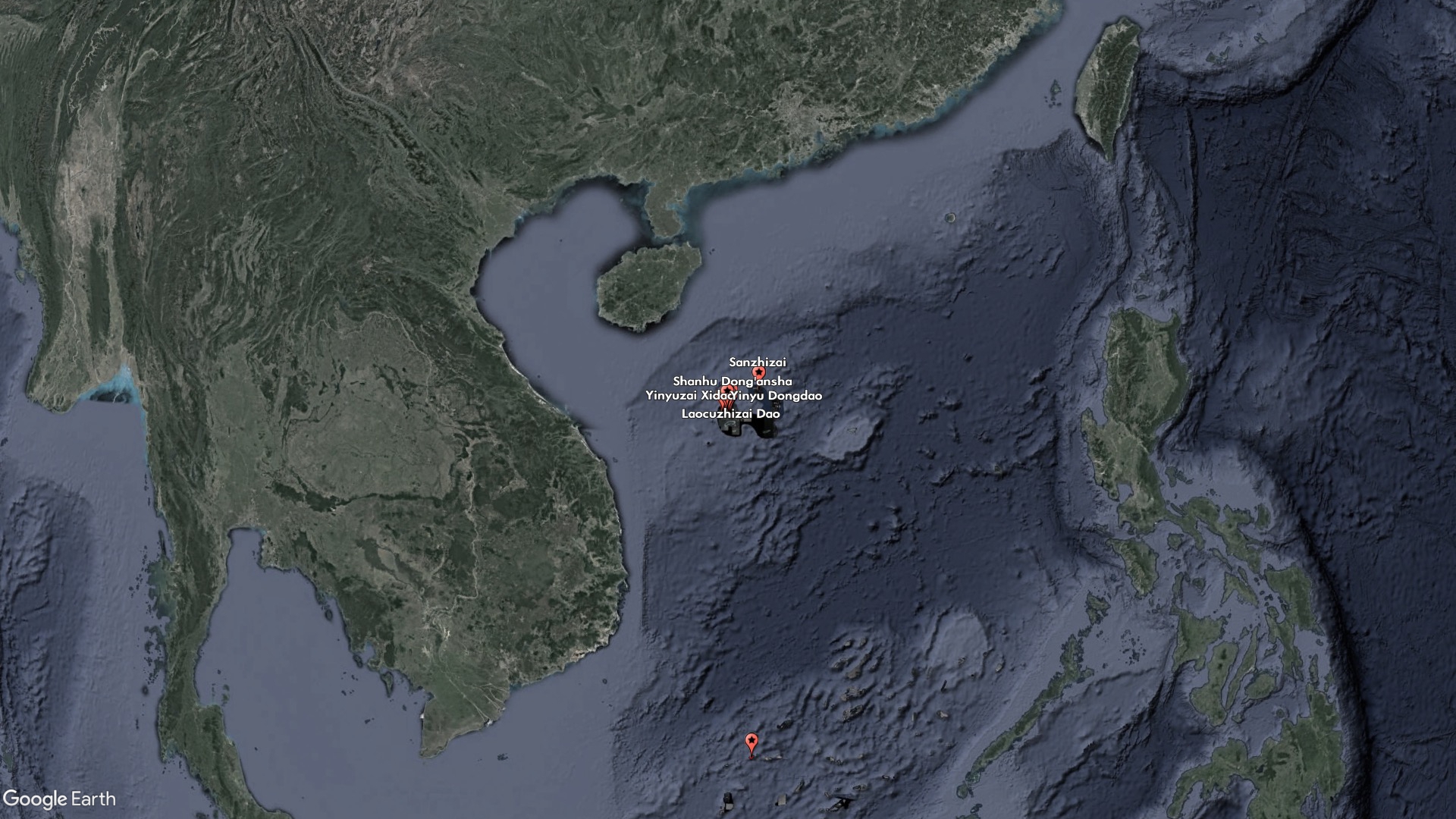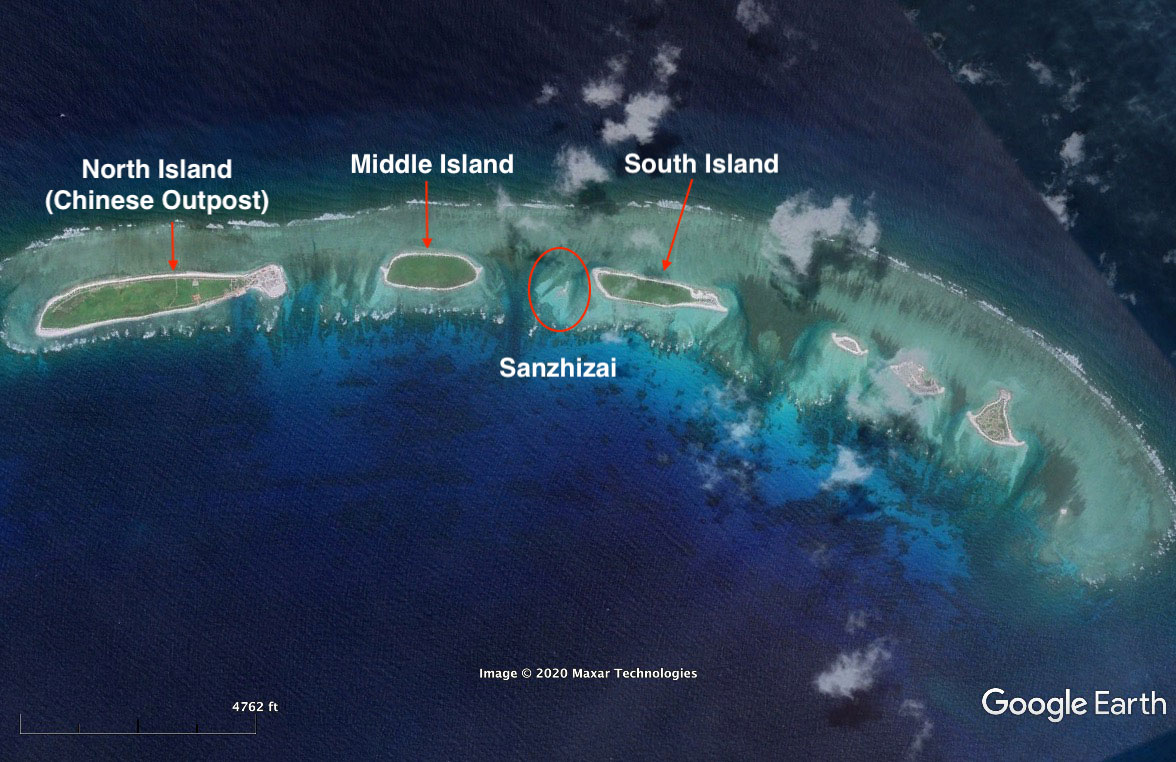 One of the new features, Sanzhizai, is a sandbar that satellite imagery shows to be uninhabited and barely above water at all hours. It is wedged between Middle Island and South Island, which are also unoccupied and claimed by China. China occupies all the inhabited features nearby, including North Island, which houses a small military outpost, and Tree Island, home to a larger port and military base.