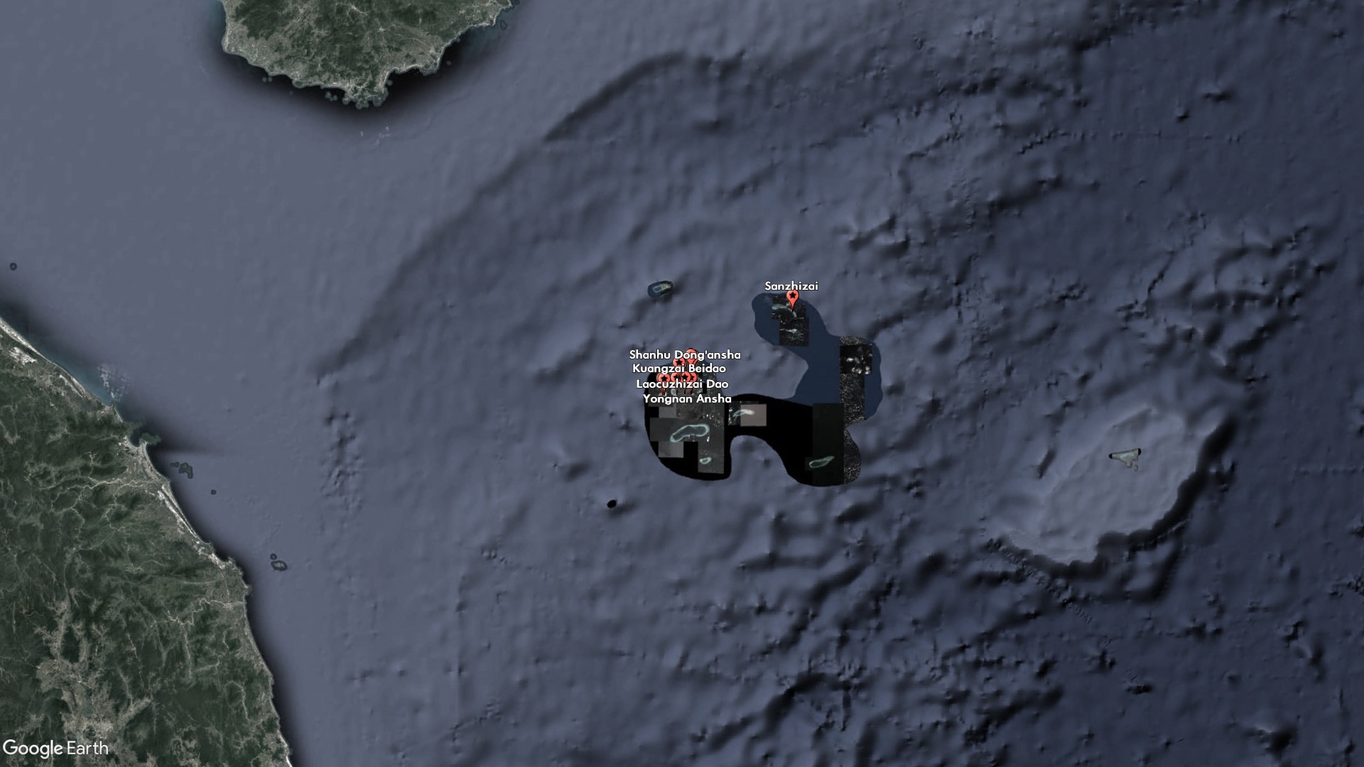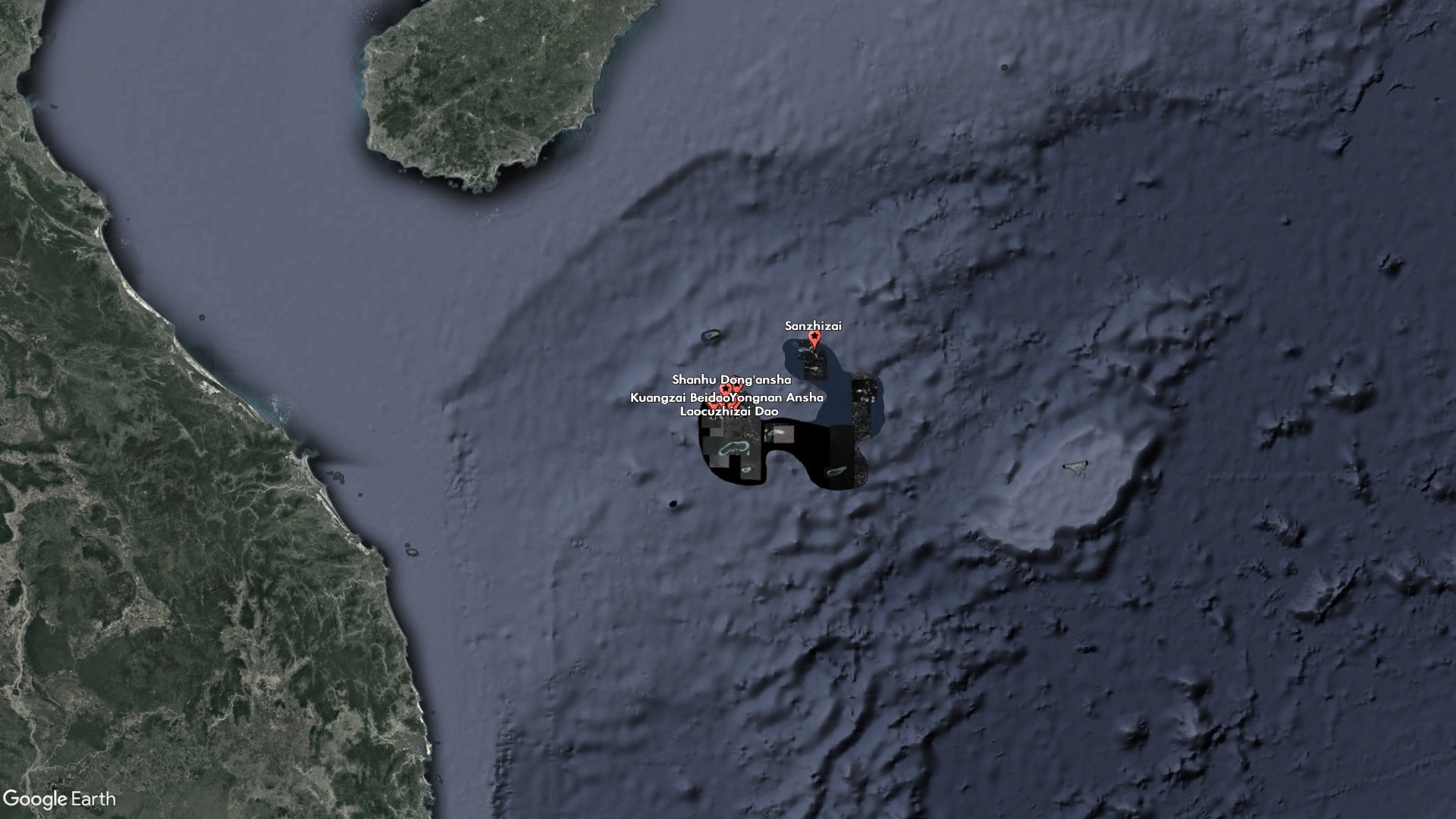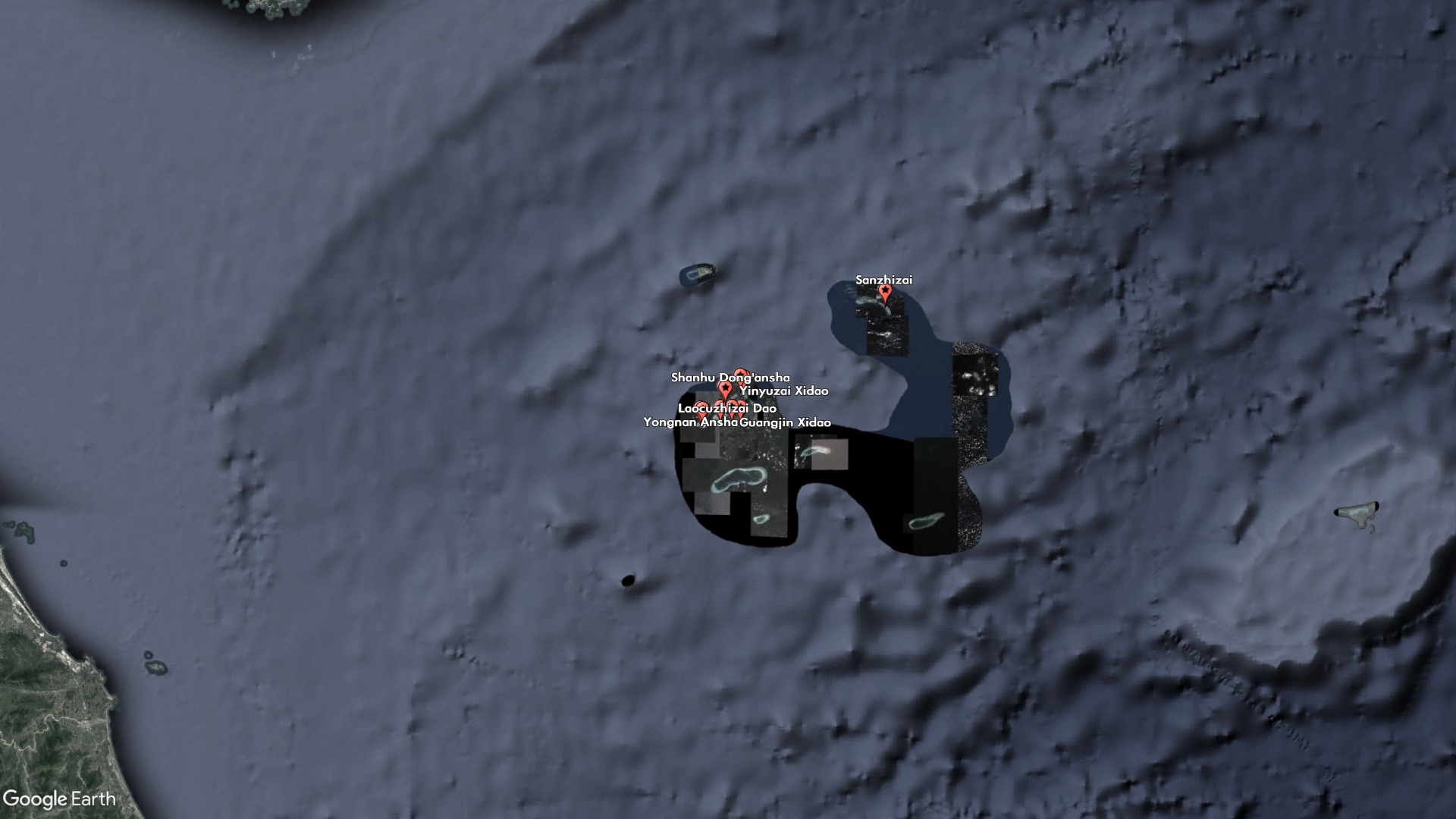 One of the new features, Sanzhizai, is a sandbar that satellite imagery shows to be uninhabited and barely above water at all hours. It is wedged between Middle Island and South Island, which are also unoccupied and claimed by China. China occupies all the inhabited features nearby, including North Island, which houses a small military outpost, and Tree Island, home to a larger port and military base.