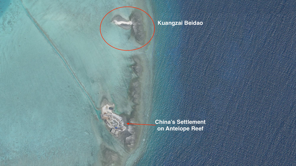 Under the landmark 2016 arbitral ruling on the South China Sea, to meet the definition of an island, a feature has to be able to "naturally sustain" human settlement and economic activity without outside help. Kuangzai Beidao clearly could not qualify - and nor could the other features on this list.