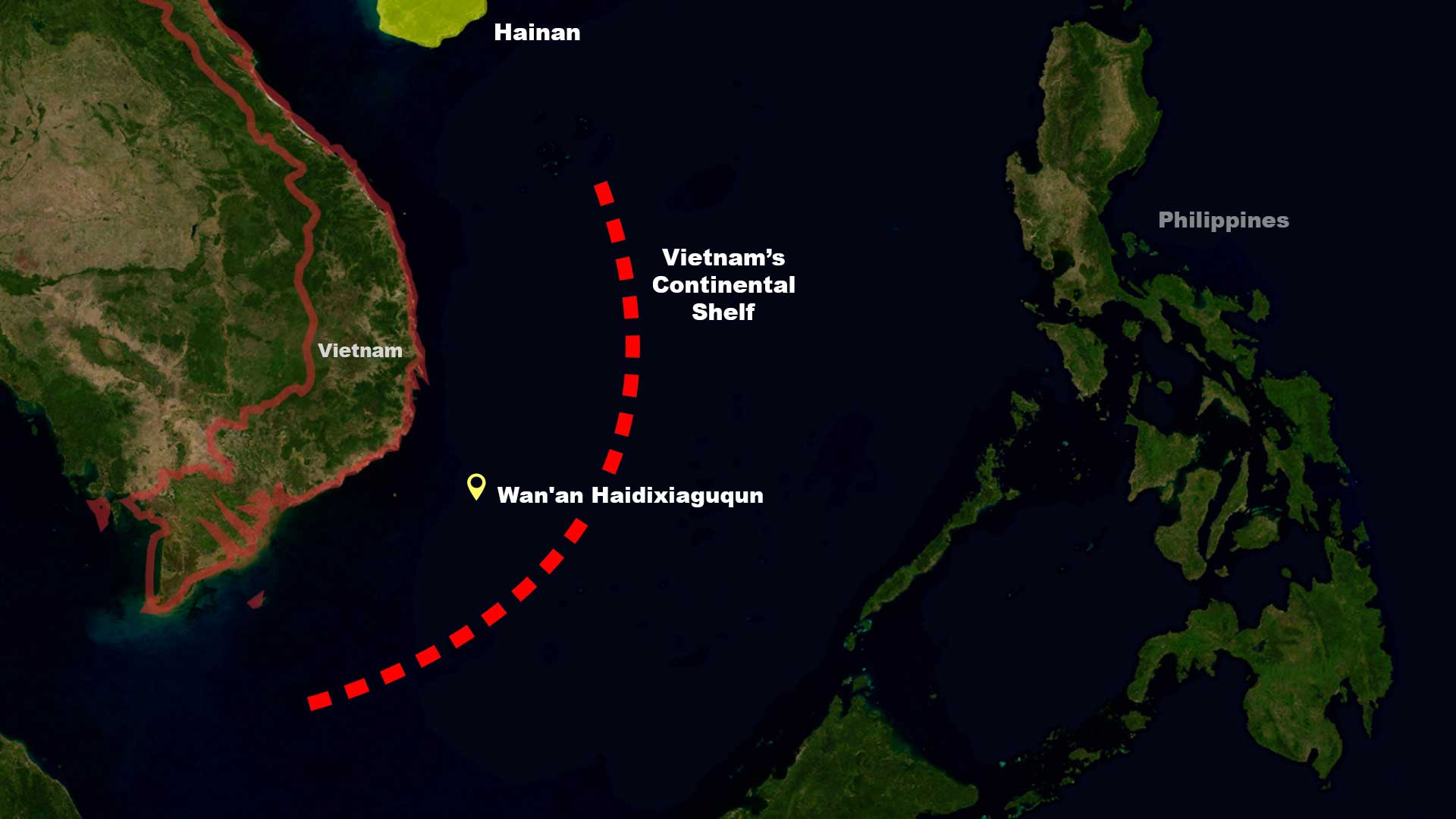 But some of the new features claimed by China, like Wan'an Haidixiaguqun (Wan'an Undersea Canyon Group), are clearly within 200 nautical miles of Vietnam's coast, which puts them on Vietnam's continental shelf. While China asserts that it too has a continental shelf spreading outward from the disputed Spratly and Paracel Islands that would extend to this area, it's a legal position that has never been recognized under UNCLOS.